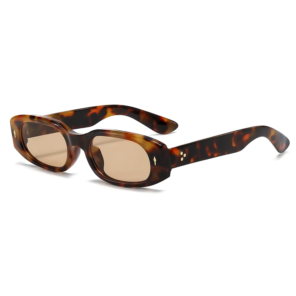 Estas gafas de sol combinan un diseño ovalado con una montura de carey que añade un toque clásico y elegante. El contraste entre su estructura atemporal y los detalles modernos hacen de este modelo una pieza versátil para cualquier ocasión. Con lentes que ofrecen una excelente protección visual, estas gafas no solo destacan por su funcionalidad, sino también por su capacidad de elevar cualquier outfit. El patrón carey les otorga una estética cálida y sofisticada, perfecta para quienes buscan una fusión de lo tradicional y lo contemporáneo en un accesorio de moda.